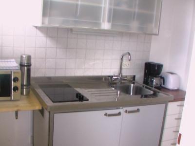 voll ausgestattete Küche (ohne Backofen) mit Mikrowelle